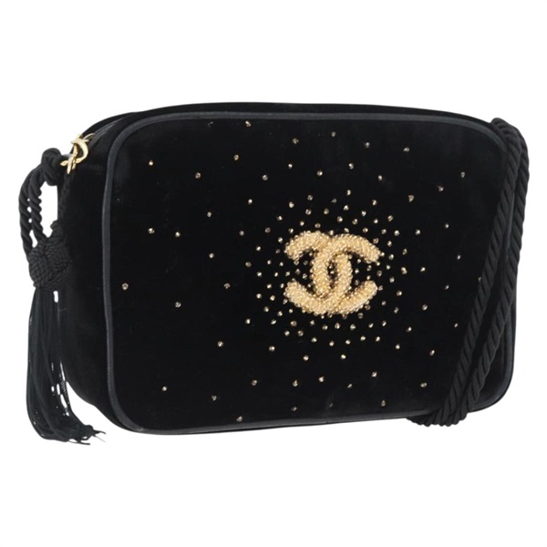 • シャネル CHANEL ショルダーバッグ ベロア ブラック ゴールド レディース ARZ008SAV