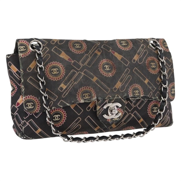シャネル CHANEL ショルダーバッグ チェーン サテン ブラック シルバー レディース ARZ448A