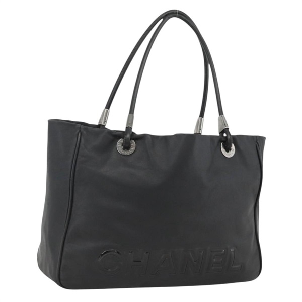 シャネル CHANEL トートバッグ カメリア ラムスキン ブラック シルバー レディース ARZ388A