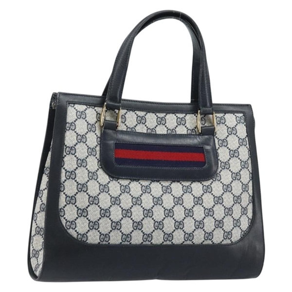 • グッチ GUCCI ハンドバッグ GGスプリーム シェリーライン PVC ネイビー ゴールド レディース AMZ016A