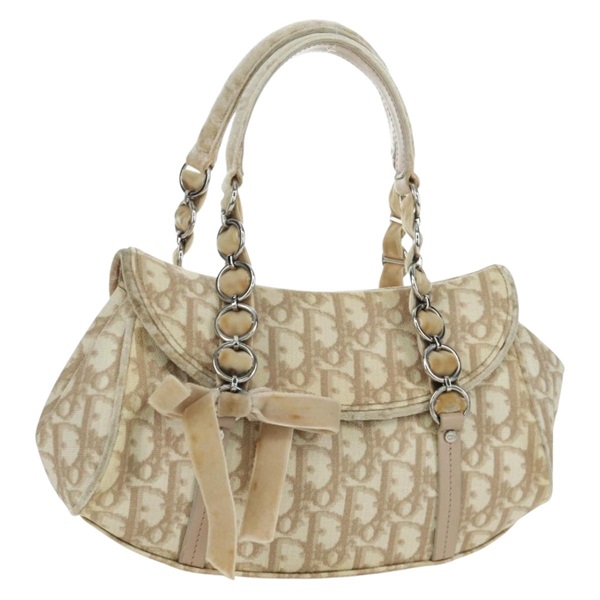 クリスチャンディオール Christian Dior ハンドバッグ トロッターキャンバス ロマンティック チェーン PVC ベージュ シルバー レディース am11148V