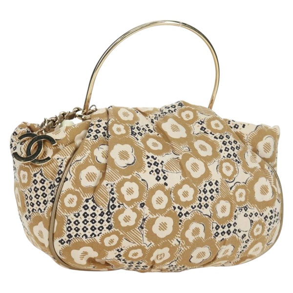 シャネル CHANEL ハンドバッグ カメリア キャンバス ベージュ ゴールド レディース BAZ669V