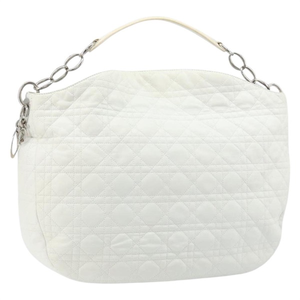 クリスチャンディオール Christian Dior ハンドバッグ カナージュ レザー ホワイト シルバー レディース BAZ241A