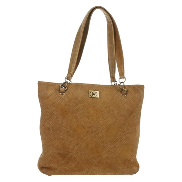 シャネル CHANEL ハンドバッグ ワイルドステッチ スエード ブラウン ゴールド レディース bs34273A