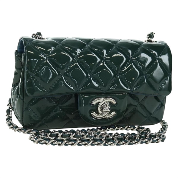 シャネル CHANEL ミニマトラッセ 17 ショルダーバッグ チェーン パテントレザー グリーン シルバー レディース AMZ309V