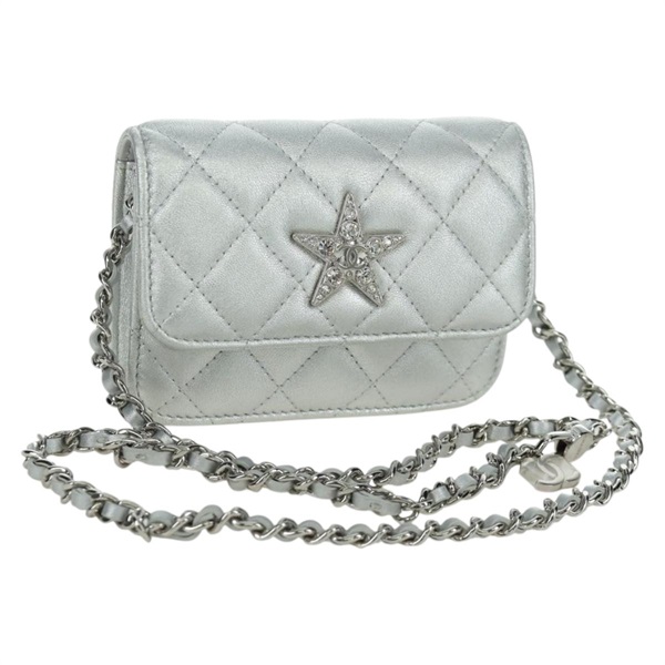 シャネル CHANEL ショルダーバッグ マトラッセ チェーン ラムスキン シルバー レディース BSZ556M