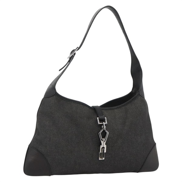 • グッチ GUCCI ショルダーバッグ ジャッキー キャンバス ブラック シルバー 28628 レディース am11143A