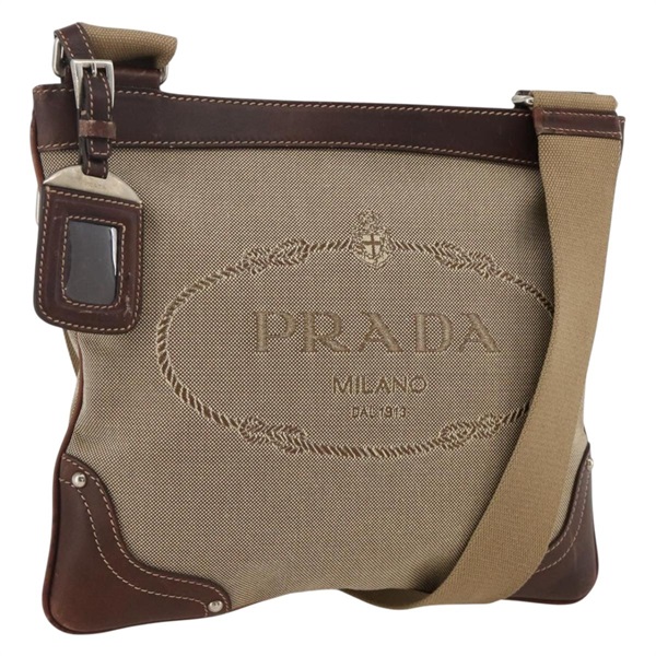 • プラダ PRADA ショルダーバッグ キャンバス ベージュ シルバー レディース YKZ581A