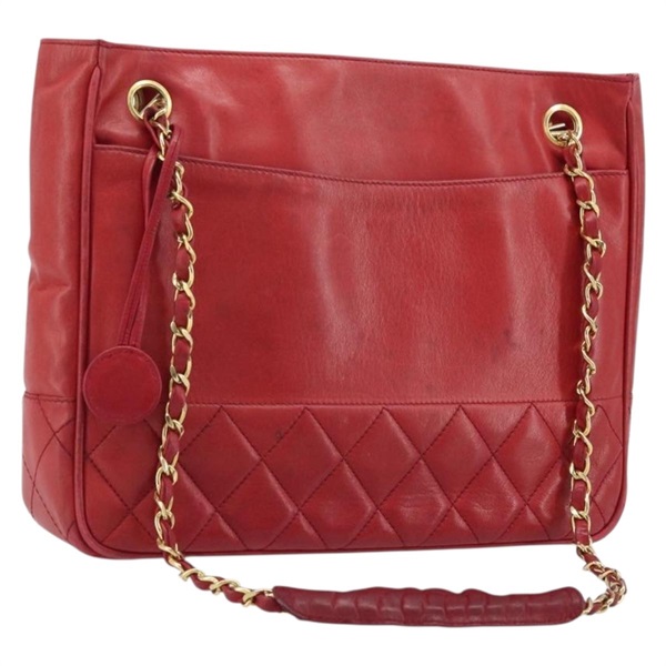 • シャネル CHANEL ショルダーバッグ チェーン ラムスキン レッド ゴールド レディース BA11646A