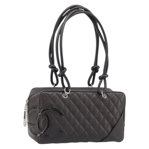 • シャネル CHANEL ショルダーバッグ カンボンライン マトラッセ レザー ブラウン シルバー レディース AMZ516SAV
