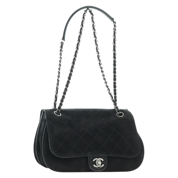 シャネル CHANEL ショルダーバッグ マトラッセ チェーン ヌバックレザー ブラック シルバー レディース BAZ254SAV