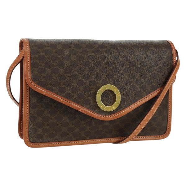 セリーヌ CELINE ショルダーバッグ マカダムキャンバス PVCレザー ブラウン ゴールド レディース BSZ680V