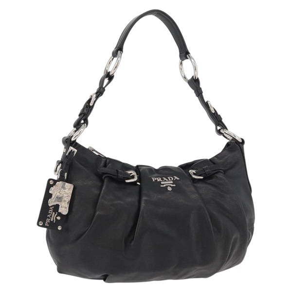 • プラダ PRADA ショルダーバッグ レザー ブラック シルバー レディース yk20210SAM
