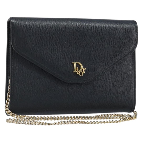 クリスチャンディオール Christian Dior ショルダーバッグ チェーン レザー ゴールド ブラック レディース BAZ035A