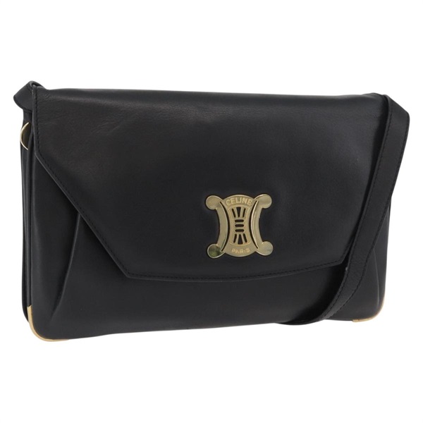 • セリーヌ CELINE ショルダーバッグ レザー ブラック ゴールド レディース BAZ622A