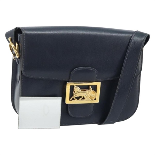 セリーヌ CELINE ショルダーバッグ 馬車 レザー ネイビー ゴールド レディース mr2246A
