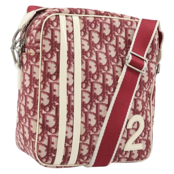 クリスチャンディオール Christian Dior ショルダーバッグ トロッターキャンバス レッド シルバー レディース SW2238A