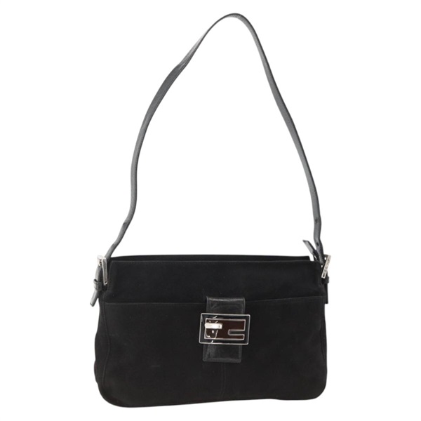 フェンディ FENDI マンマバゲット ショルダーバッグ スエード ブラック シルバー レディース YKZ894A