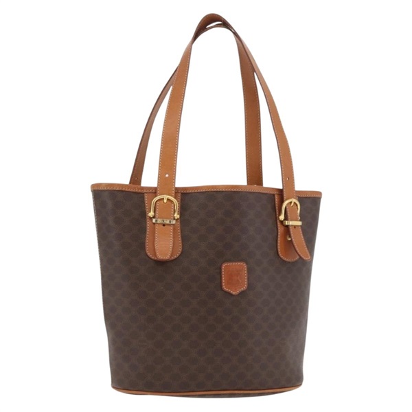 セリーヌ CELINE トートバッグ マカダムキャンバス PVCレザー ブラウン ゴールド レディース ka3549A