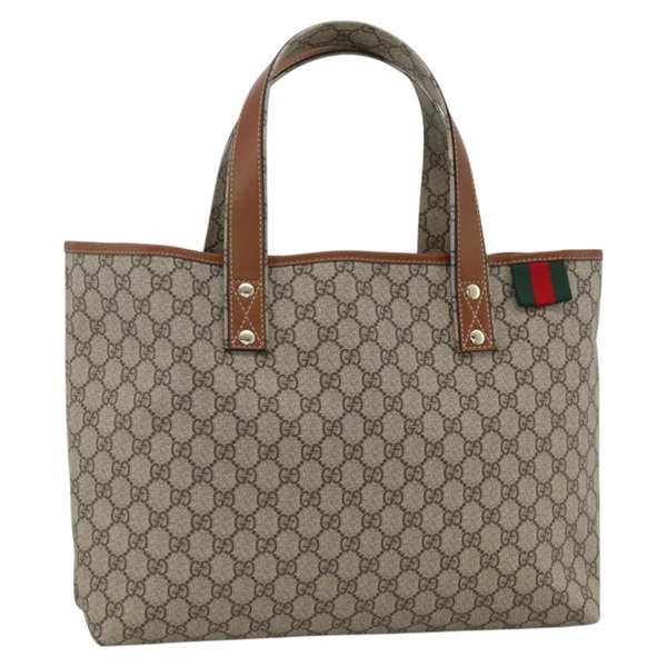 グッチ GUCCI トートバッグ GGスプリーム ウェブシェリーライン PVC ベージュ ゴールド 211134 レディース YKZ918A