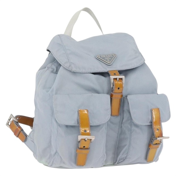 • プラダ PRADA バックパック ナイロン ライトブルー シルバー レディース AMZ383A