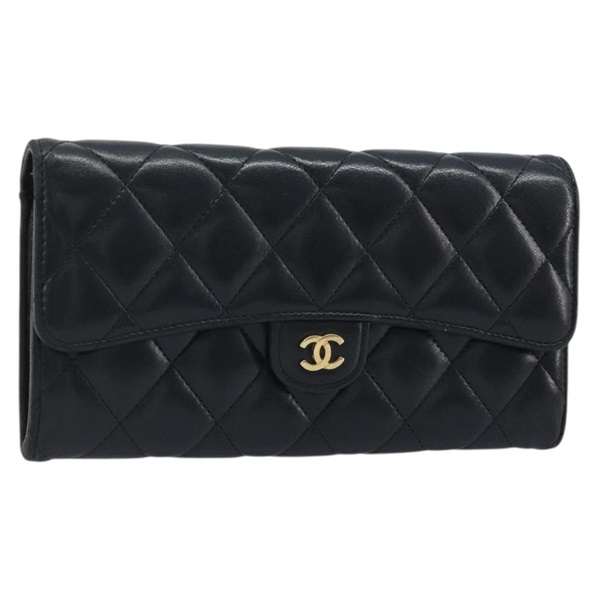 • シャネル CHANEL 長財布 マトラッセ ラムスキン ブラック ゴールド レディース BAZ260A