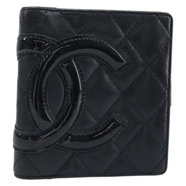 シャネル CHANEL 二つ折り財布 マトラッセ カンボンライン レザー ブラック シルバー レディース BAZ259A