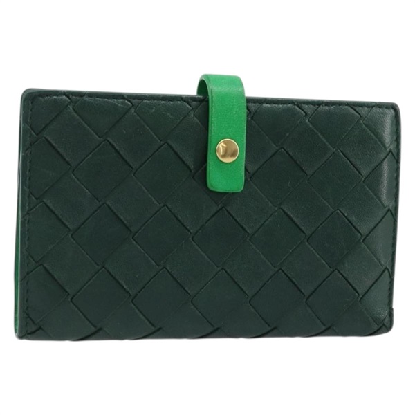 ボッテガヴェネタ BOTTEGAVENETA 二つ折り財布 イントレチャート レザー グリーン ゴールド レディース BAZ264A