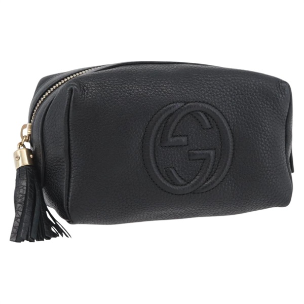 グッチ GUCCI ポーチ レザー ブラック ゴールド 308636 レディース ka3331A