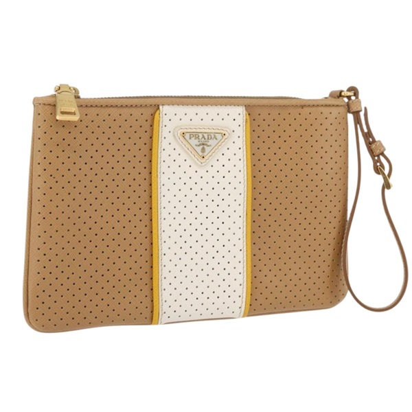 プラダ PRADA ポーチ パンチング レザー ベージュ ゴールド レディース BAZ062A