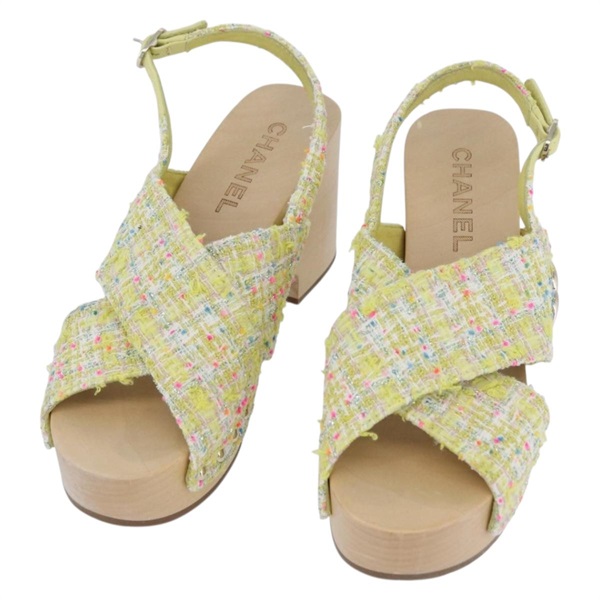 シャネル CHANEL サンダル ココマーク ツイード イエロー レディース AMZ178M