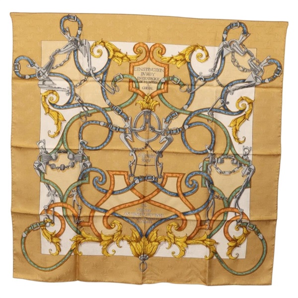 • エルメス HERMES カレ90 スカーフ "L'INSTRVCTION DV ROY" シルク ベージュ レディース 174177A