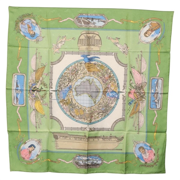 エルメス HERMES カレ90 スカーフ "Orbis Australis" シルク グリーン レディース BA12023A